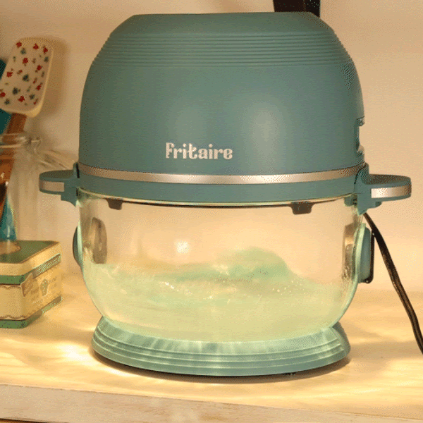 With Fritaire, you just fill the glass bowl with soapy water and let the hot air stream circulator rinse it out from the inside.